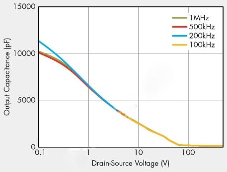 過去,許多設計人員都使用粗略假設來提供等效輸出電容值,因為輸出電容通常都指定為25V漏源電壓。不過,傳統的等效輸出電容值在實際應用中卻沒有多大幫助,因為它隨漏源電壓變化,並且在開關導通/關(guan)斷(duan)期(qi)間(jian)不(bu)能(neng)提(ti)供(gong)準(zhun)確(que)的(de)儲(chu)能(neng)信(xin)息(xi)。在(zai)功(gong)率(lv)轉(zhuan)換(huan)器(qi)工(gong)作(zuo)電(dian)壓(ya)下(xia),新(xin)定(ding)義(yi)的(de)輸(shu)出(chu)電(dian)容(rong)提(ti)供(gong)等(deng)效(xiao)的(de)儲(chu)能(neng),能(neng)夠(gou)實(shi)現(xian)更(geng)優(you)化(hua)的(de)功(gong)率(lv)轉(zhuan)換(huan)器(qi)設(she)計(ji)。