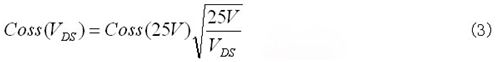 公式(1)用於移相全橋拓撲,公式(2)用於LLC諧振半橋拓撲。在兩個公式中輸出電容都起著重要作用。如果在公式(1)中假設輸出電容很大,則由公式將得出較大的電感。然後,此大電感將降低初級di/dt,並降低功率轉換器的有效占空比。相反,太小的輸出電容將導致較小的電感和有害的硬開關。另外,公式(2)中(zhong)太(tai)大(da)的(de)輸(shu)出(chu)電(dian)容(rong)將(jiang)限(xian)製(zhi)磁(ci)化(hua)電(dian)感(gan)並(bing)引(yin)起(qi)循(xun)環(huan)電(dian)流(liu)的(de)增(zeng)加(jia)。因(yin)此(ci),對(dui)於(yu)優(you)化(hua)軟(ruan)開(kai)關(guan)轉(zhuan)換(huan)器(qi)設(she)計(ji),獲(huo)取(qu)準(zhun)確(que)的(de)開(kai)關(guan)輸(shu)出(chu)電(dian)容(rong)值(zhi)將(jiang)非(fei)常(chang)關(guan)鍵(jian)。通(tong)常(chang),針(zhen)對(dui)等(deng)效(xiao)輸(shu)出(chu)電(dian)容(rong)的(de)傳(chuan)統(tong)假(jia)設(she)傾(qing)向(xiang)於(yu)使(shi)用(yong)較(jiao)大(da)數(shu)值(zhi)。所(suo)以(yi),根(gen)據(ju)公(gong)式(shi)(1)或(2)選擇電感後,設計人員還需調整功率轉換器參數,並經過多次反複設計,因為每個參數都相互關聯,例如,匝數比、漏電感、以及有效占空比。而且,功率MOSFET的輸出電容將跟隨漏源電壓變化。在功率轉換器工作電壓下,提供等效儲能的輸出電容是這些應用的最佳選擇。