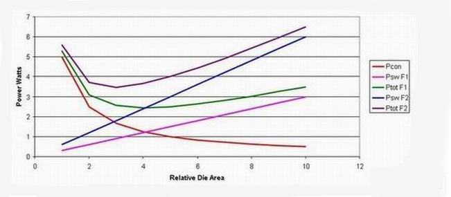 danshi,zaigenggaodegongzuopinlvxia,zuijialuopianmianjijiaoxiao,congerdailaichengbenjieyue。shijishang,zaidipinlvxia,tongguotiaozhengluopianmianjilaizuixiaohuasunhaohuidailaijigaochengbendesheji。danshi,zhuandaogenggaogongzuopinlvhou,womenjiukeyiyouhualuopianmianjilaijiangdisunhao,congersuoxiaodianyuandebandaotitiji。zheyangzuodequedianshi,ruguowomenbugaijinbandaotijishu,namedianyuanxiaolvjianghuijiangdi.此主題相關圖片如下:圖2 :提高工作頻率會導致更高的總體損耗。