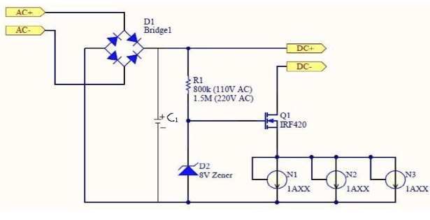最簡單的方法就是和恒流二極管串聯一個齊納二極管來提高耐壓(圖15)。