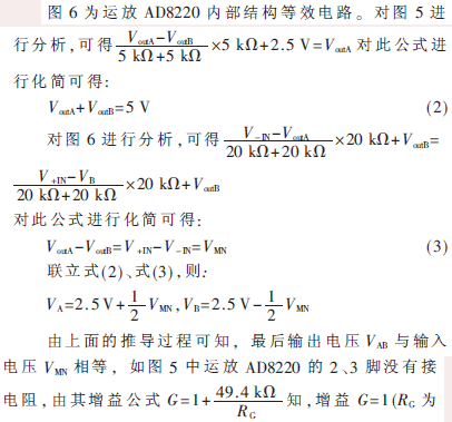 圖5為電壓輸出采集電路,M、N兩點間的電壓接運放AD8220,再經運放OP1177處理後,得到輸出電壓VoutA、VoutB,此電壓最後接色譜工作站或接AD轉換器和單片機進行處理,可檢測物質的成分和含量。