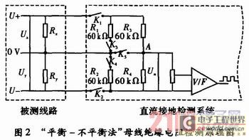 直流電源係統主要負責為電力生產過程中的控製設備、baohushebeidenggongdian。jueyuanxingnengxiajianghezhiliumuxianjiedishizhiliudianyuanxitongchangjiandeguzhang。yidanzhiliudianyuanfashengguzhanghou,huiyingxiangkongzhishebeihebaohushebeidezhengchanggongzuo,guzhangyanzhongshishenzhihuidaozhikongzhishebeidecuowukongzhihebaohushebeidejubaohu,congeryinfashengchanshigu。因此對直流電源係統的絕緣性能檢測和接地檢測是值得重視的問題。常見的直流接地檢測係統,多采用平衡電橋原理檢測母線的絕緣電阻,采用雙頻探測原理檢測支路的絕緣電阻,並查找接地支路。但平衡電橋原理不能檢測正負母線絕緣電阻等比例下降情況下的電阻值,而雙頻探測原理需要向係統中注入交流信號,會加大直流電源係統的紋波。本文介紹的直流接地檢測係統采用“平衡-不平衡法”檢測母線電壓,采用漏電流傳感器檢測支路絕緣電阻,有效地克服了上述方法的缺陷。
