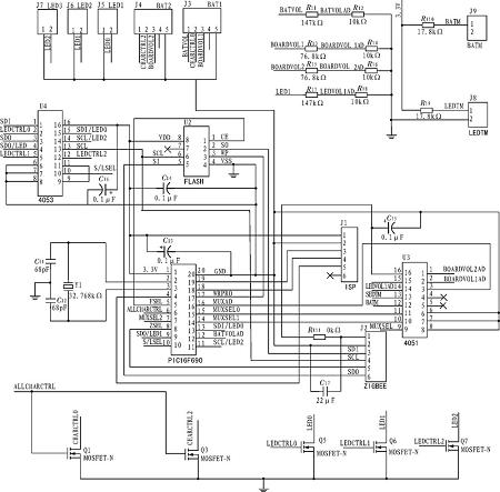 根據如上計算,具體設計框圖如圖6所示,為太陽能路燈控製係統硬件框架。圖7為太陽能路燈控製係統電路原理圖。