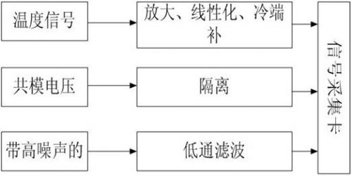 直(zhi)接(jie)采(cai)集(ji)來(lai)的(de)信(xin)號(hao)由(you)於(yu)噪(zao)聲(sheng)等(deng)原(yuan)因(yin)不(bu)一(yi)定(ding)能(neng)夠(gou)滿(man)足(zu)采(cai)集(ji)係(xi)統(tong)的(de)要(yao)求(qiu),為(wei)了(le)適(shi)合(he)數(shu)據(ju)采(cai)集(ji)設(she)備(bei)的(de)輸(shu)入(ru)範(fan)圍(wei),由(you)傳(chuan)感(gan)器(qi)生(sheng)成(cheng)的(de)電(dian)信(xin)號(hao)必(bi)須(xu)經(jing)過(guo)處(chu)理(li)。信(xin)號(hao)調(tiao)理(li)裝(zhuang)置(zhi)能(neng)夠(gou)按(an)照(zhao)要(yao)求(qiu)放(fang)大(da)或(huo)者(zhe)縮(suo)小(xiao)電(dian)壓(ya)電(dian)流(liu)範(fan)圍(wei),並(bing)對(dui)信(xin)號(hao)進(jin)行(xing)隔(ge)離(li)濾(lv)波(bo)等(deng)處(chu)理(li)。光(guang)伏(fu)監(jian)測(ce)係(xi)統(tong)的(de)信(xin)號(hao)調(tiao)理(li)圖(tu)如(ru)圖(tu)3所示。