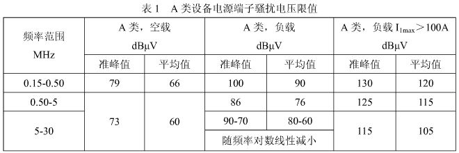 要想讓逆變焊機內部產生的電磁騷擾徹底消除是不可能的, 我們隻要使焊機符合 GB15579.10 標準的要求就可以了,電源端子騷擾電壓的限值見表 1。IGBT 逆變焊機通過空載試驗一般都沒有問題,焊機負載狀態(I1max≤100A)的騷擾電壓限值見表 1 的 A類。