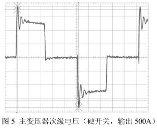 圖4 IGBT開通、關斷的電壓、電流(軟開關) 肖介光等:IGBT逆變焊機電磁騷擾的抑製 同時,由於主變壓器的漏感及分布電容在 IGBT 開通、關(guan)斷(duan)時(shi),常(chang)常(chang)產(chan)生(sheng)高(gao)頻(pin)高(gao)壓(ya)尖(jian)峰(feng)震(zhen)蕩(dang),由(you)此(ci)而(er)產(chan)生(sheng)的(de)高(gao)次(ci)諧(xie)波(bo)可(ke)由(you)多(duo)種(zhong)途(tu)徑(jing)傳(chuan)入(ru)內(nei)部(bu)電(dian)路(lu),也(ye)可(ke)通(tong)過(guo)散(san)熱(re)器(qi)及(ji)主(zhu)變(bian)壓(ya)器(qi)等(deng)途(tu)經(jing)向(xiang)空(kong)間(jian)輻(fu)射(she)。