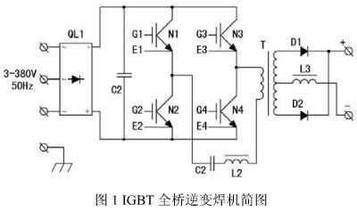 圖 1 是全橋 IGBT 逆變焊機主電路簡圖,由圖 1 可見,三相 380V電源進入焊機首先要經過三相整流橋QL1 整流和 C2 濾波,濾波電容器的等效容量一般在 50~1000µf 之間,在采用大電容器濾波的整流濾波電路中,整流二極管導通時間較短,濾波電容充電電流瞬時峰值大,電流波形為近似尖脈衝,使 50Hz 正弦電流波形發生畸變,產生諧波電流。