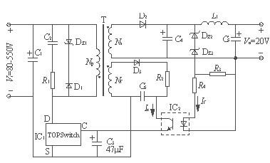 第七步確定反饋繞組的參數,反饋是反激的電壓,其電壓是取自輸出級的,所以反饋電壓是穩定的,TOP 的電源電壓是5.7到9V,繞上7匝,那麼其電壓大概是6V多,這就可以了,記得,反饋電壓是反激的,其匝數比要和幅邊對應,懂什麼意思嗎,至於線,因為流過其的電流很小,所以就用繞原邊的線繞就可以了,無嚴格的要求.