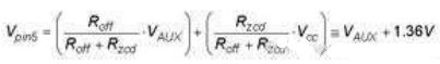 然後,施加在引腳5上的電壓就偏置。事實上,這就像是VAUX電壓與減小了1.36V的ZCD閾值比較。這樣一來,新的實際ZCD閾值就是: