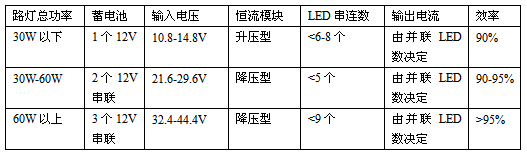 3.1 蓄電池隻有幾種規定的電壓,12V是最常使用的,因為它是汽車電池的標準電壓。24V就需要用兩個串聯。36V就更少見了。為此,在太陽能LED路燈中經常需要采用升壓型的恒流驅動模塊。這就影響了恒流模塊的效率。