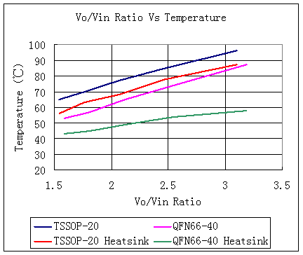 從圖中可以看出,芯片封裝也是很重要的,采用QFN的芯片封裝顯然好於采用TSSOP的芯片封裝,因為它的熱阻要低很多。所以在購買模塊時也要了解所采用芯片的封裝(盡可能采用QFN封裝的,盡量不要采用TSSOP封裝的)。
