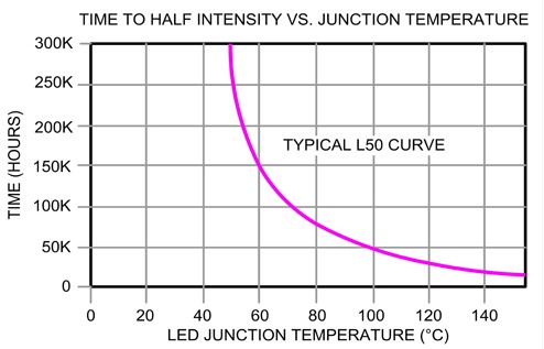 每mei種zhong照zhao明ming設she備bei均jun存cun在zai光guang源yuan使shi用yong壽shou命ming問wen題ti,經jing常chang遭zao遇yu的de狀zhuang況kuang有you類lei似si白bai熾chi燈deng泡pao的de鎢wu絲si突tu然ran燒shao斷duan,或huo因yin長chang時shi間jian使shi用yong而er使shi得de光guang源yuan材cai料liao因yin逐zhu漸jian老lao化hua以yi致zhi變bian暗an而er故gu障zhang,LEDyiyinzujiandejiemianwenduerchuxianlaohuaxianxiang。suoyoudezhaomingshebeizaitigongwendingliangdutiaojianxia,yuyidingshiyongnianxianhou,liangdushibihuizhujiandiyuyouxiaoliangduzhixia。zaibutongdezhaomingyingyongzhuangzhizhong,jieyoushiyongshoumingshijianxianzhi。julilaishuo,dangshiyongzailudengzhuangzhideliangduyishuaijianzhiyuanxian50%時,即代表使用年限,但使用在醫生內視鏡的光源裝置可能亮度尚未衰減那麼多。