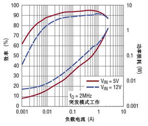 這兩款 IC 都能以可選的突發模式 (Burst Mode®) 工作,以在小負載電流時實現卓越的效率 (圖 4),又(you)或(huo)者(zhe)可(ke)采(cai)用(yong)強(qiang)製(zhi)連(lian)續(xu)模(mo)式(shi),該(gai)模(mo)式(shi)舍(she)棄(qi)輕(qing)負(fu)載(zai)效(xiao)率(lv),以(yi)換(huan)取(qu)最(zui)小(xiao)輸(shu)出(chu)紋(wen)波(bo)和(he)恒(heng)定(ding)頻(pin)率(lv)工(gong)作(zuo)。即(ji)使(shi)這(zhe)樣(yang),以(yi)突(tu)發(fa)模(mo)式(shi)工(gong)作(zuo)時(shi)的(de)紋(wen)波(bo)一(yi)般(ban)也(ye)僅(jin)為(wei) 20mV。