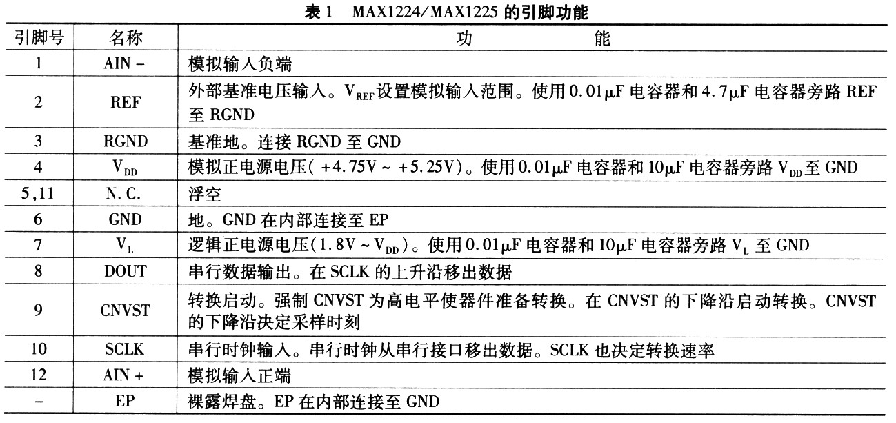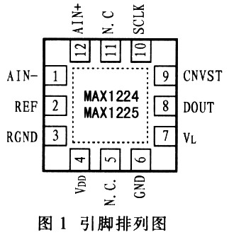 MAXl224/MAXl225采用小巧的12引腳TQFN封裝,其引腳排列如圖1所示。各個引腳的功能如表l所示。