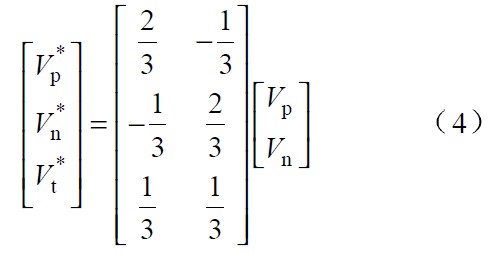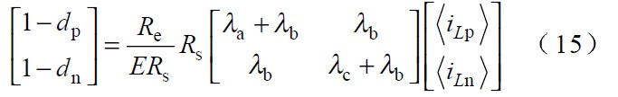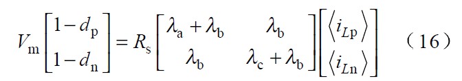 圖中 Vp 、Vn 為不同區間所對應的電壓,Lp、 Ln 和Lt 為不同區間所對應的電感,Tp、 Tn 為不同區間所對應的主控開關,dp 、dn 為主控開關的占空比。由於PWM 開(kai)關(guan)頻(pin)率(lv)遠(yuan)高(gao)於(yu)電(dian)網(wang)頻(pin)率(lv),因(yin)此(ci),在(zai)一(yi)個(ge)開(kai)關(guan)周(zhou)期(qi)內(nei),各(ge)電(dian)感(gan)的(de)電(dian)壓(ya)平(ping)均(jun)值(zhi)為(wei)零(ling),運(yun)用(yong)回(hui)路(lu)電(dian)流(liu)法(fa)和(he)節(jie)點(dian)電(dian)壓(ya)法(fa)對(dui)各(ge)種(zhong)開(kai)關(guan)狀(zhuang)態(tai)進(jin)行(xing)分(fen),析(xi)可(ke)得(de)出(chu):