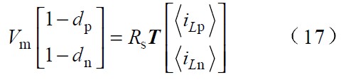可以證明,式1 在任意區間的兩種開關順序都成立,並且隻要電路工作在連續導通的模式,該等式即能準確反映出穩態電路的輸入電壓、輸出電壓和占空比三者之間的固定關係,與所采用的控製方案無關。因此式1 即為該整流器的狀態方程。