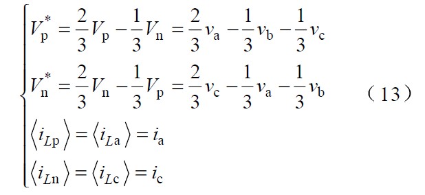根據式 (3 ),以區間I 為例,可以通過控製開關 Tp 、Tn 使電感電流iLb iLc 對應 V *p和 V *n相應的變化來實現。由於在I 區間內有: