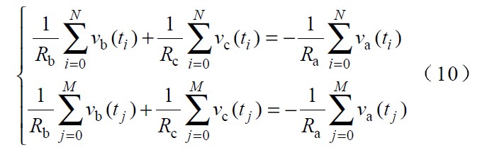 由於電網電壓可能存在各種幹擾,為使計算結果盡可能精確,可將一個或幾個周期內的n 個采樣電壓分為多組,取其中的兩組來計算相電壓不對稱係數。對式(9) 按該兩組相加,可得:
