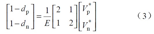 由式(17 )可知,如果控製開關Tp 和Tn, 使開關占空比dp 和dn 滿足該式的線性組合,就可以實現三相PFC. 因此,式(17 )是改進後實現單位功率因數的關鍵函數。當輸入電壓對稱時,λa=λb=λc=1 ,式(17 )即簡化為式(5)。