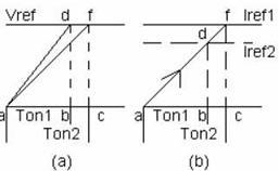 傳統的開關電源控製電路中,電流極限比較器結構如圖1(a)所示,檢測電流由M1(senseMOSFET)流入由多個開關管和電阻組成的網絡R1中,該網絡通過控製開關管導通或關斷,改變R1的電阻值,得到不同的占空比。另外一基準電流流過一阻值固定的電阻R,產生一固定參考電壓。當R1的壓降隨檢測電流上升到參考電壓時,比較器關斷功率管,保證輸出電壓穩定。其工作原理如圖2(a)所示,例如:R1上的電壓從a上升到d,從而關斷功率管產生一占空比,當改變R1的電阻值,R1上的電壓從a上升到f得到另一占空比。從圖1(a)可以看出:傳chuan統tong的de開kai關guan電dian源yuan電dian流liu極ji限xian比bi較jiao器qi是shi將jiang兩liang種zhong電dian流liu先xian轉zhuan化hua成cheng電dian壓ya再zai進jin行xing比bi較jiao,需xu要yao占zhan芯xin片pian麵mian積ji非fei常chang大da的de電dian阻zu網wang絡luo和he開kai關guan管guan,並bing且qie為wei保bao證zheng電dian阻zu精jing度du,一yi般ban需xu要yao激ji光guang修xiu調tiao技ji術shu,這zhe大da大da增zeng加jia了le芯xin片pian成cheng本ben。因yin此ci本ben文wen在zai此ci基ji礎chu上shang提ti出chu一yi種zhong新xin型xing的de電dian流liu極ji限xian比bi較jiao器qi結jie構gou。