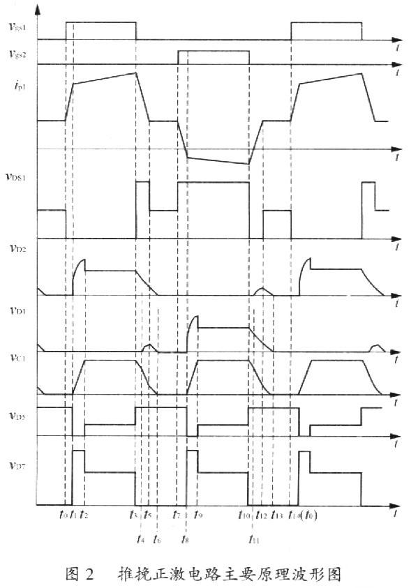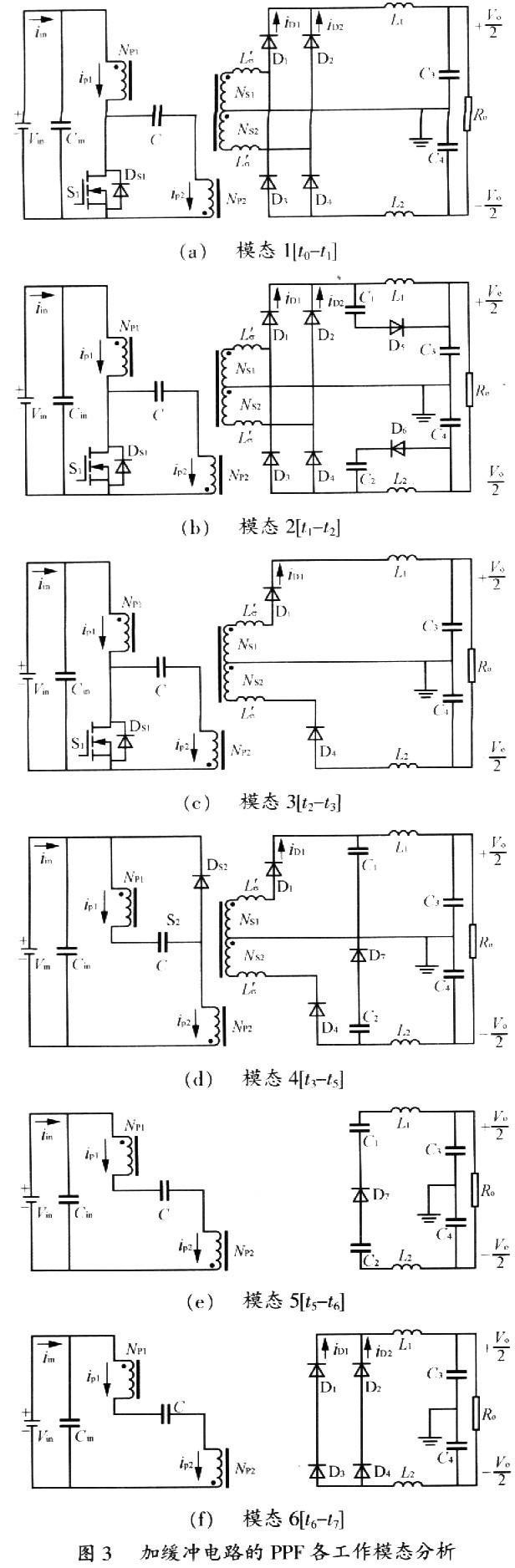 圖2為加無損緩衝吸收的PPF電路工作原理波形圖,一共分為14個工作模態。