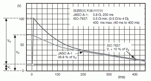 兩個熟知的試驗模擬了這個條件:針對14V動力總成的美國ISO-7637-2 Pulse 5和日本JASO A-1和針對27V動力總成的JASO D-1。在本節中,我們將回顧在14V動力總成中用於甩負荷的TVS應用。