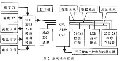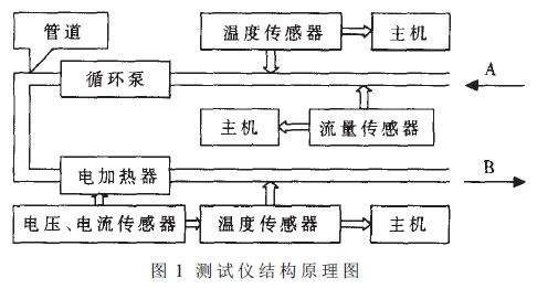 本儀器由流量傳感器、電流傳感器、電壓傳感器、溫度傳感器、泵、電加熱器;管道和主機等緩威.結構麵匡如圖1所示。