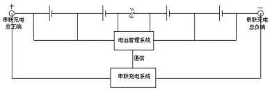 由(you)於(yu)上(shang)述(shu)三(san)種(zhong)充(chong)電(dian)方(fang)法(fa)都(dou)存(cun)在(zai)一(yi)定(ding)的(de)問(wen)題(ti),本(ben)人(ren)發(fa)展(zhan)出(chu)一(yi)種(zhong)最(zui)適(shi)合(he)高(gao)電(dian)壓(ya)電(dian)池(chi)組(zu),特(te)別(bie)是(shi)電(dian)動(dong)汽(qi)車(che)電(dian)池(chi)組(zu)的(de)充(chong)電(dian)方(fang)法(fa),即(ji)采(cai)用(yong)電(dian)池(chi)管(guan)理(li)係(xi)統(tong)和(he)充(chong)電(dian)機(ji)協(xie)調(tiao)配(pei)合(he)串(chuan)聯(lian)大(da)電(dian)流(liu)充(chong)電(dian)加(jia)恒(heng)壓(ya)限(xian)流(liu)的(de)並(bing)聯(lian)小(xiao)電(dian)流(liu)充(chong)電(dian)的(de)模(mo)式(shi),原(yuan)理(li)圖(tu)見(jian)下(xia)。