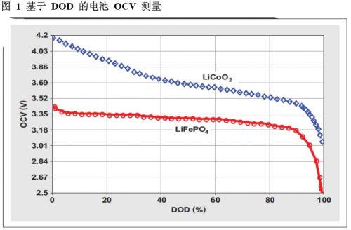 然而,更新電池總化學容量 (Qmax) 相關信息要求具備某些條件。磷酸鐵鋰(LiFePO4) 電池的極端穩定電壓狀態下要完成這項工作變得較為困難(請參見圖1),特別是如果無法對電池完全放電且讓其休息數小時那就更加困難了。圖 1顯示了典型開路電壓 (OCV) 特性與鈷酸鋰 (LiCoO2) 和磷酸鐵鋰 (LiFePO4)電池化學屬性放電深度 (DOD) 的關係。本文主要討論參考文獻 1 和參考文獻2 的阻抗跟蹤技術。
