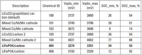 表 1 摘選自參考文獻 3,其根據 Qmax 更新的化學屬性列出不合格的電壓範圍