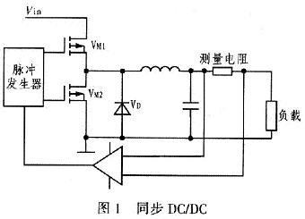Vin為輸入電壓,VM1、VM2為MOSFET,VM1導通寬度決定輸出電壓大小,快恢複二極管和VM2共同續流電路,整流管的導通損耗占據最主要的部分,因此它的選擇至關重要,試驗中選用通態電阻很低的M0SFET。電感、電容組成濾波電路。測量電阻兩端電壓與給定值比較後,通過脈衝發生器產生相應的脈寬,保持負載電流穩定。VM1關斷,快恢複二極管工作,快恢複二極管通態損耗大,VM2接著開通續流,減少係統損耗。