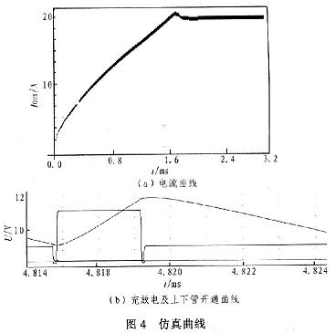 公式,VM1關斷,電流通過VD續流,接著VN2導通。由於VM2的阻抗遠小於二極管阻抗,因此通過VM2續流。VMl、VN2觸發脈衝如圖2所示。圖2中td為續流二極管導通時間。