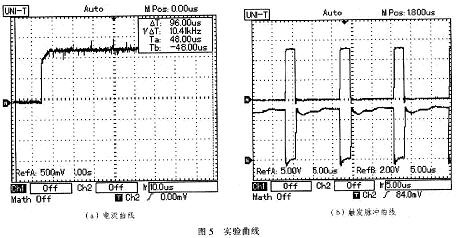 實驗曲線如圖5所示,實驗數據為輸入電壓12 V,輸出電壓2 V左右,測量電阻0.0025 Ω,最大輸出電流20 A。