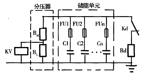 脈衝電容器儲能後,由控製電路發送命令進行觸發放電(ETcG發射)。ETCG發射精度和一致性與PPS儲(chu)能(neng)量(liang)密(mi)切(qie)相(xiang)關(guan),電(dian)容(rong)器(qi)儲(chu)能(neng)大(da)小(xiao)與(yu)其(qi)充(chong)電(dian)電(dian)壓(ya)的(de)量(liang)值(zhi)平(ping)方(fang)成(cheng)正(zheng)比(bi),因(yin)此(ci)控(kong)製(zhi)電(dian)路(lu)必(bi)須(xu)能(neng)精(jing)確(que)控(kong)製(zhi)充(chong)電(dian)電(dian)壓(ya)量(liang)值(zhi),這(zhe)可(ke)以(yi)通(tong)過(guo)與(yu)被(bei)充(chong)電(dian)容(rong)器(qi)組(zu)並(bing)聯(lian)"分壓器一電壓繼電器組"來實現,見圖2。