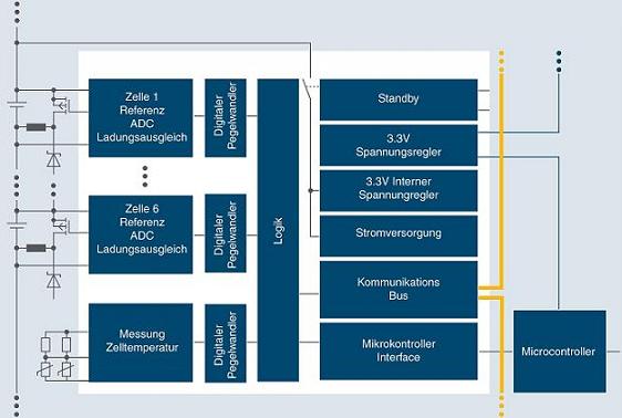 鋰離子電池基於安全的原因,必須監控單個電池單元,因為過載會發生燃燒,在極端情況下甚至會發生爆炸。與過壓、欠qian壓ya和he溫wen度du監jian控kong一yi樣yang,精jing確que的de充chong電dian條tiao件jian測ce定ding等deng附fu加jia功gong能neng也ye是shi需xu要yao的de。在zai半ban導dao體ti市shi場chang上shang已yi提ti供gong能neng實shi現xian所suo有you這zhe些xie功gong能neng與yu不bu同tong的de平ping衡heng方fang法fa的de元yuan件jian。使shi用yong先xian進jin的de主zhu動dong電dian池chi單dan元yuan平ping衡heng解jie決jue方fang案an(如愛特梅爾ATA6870電池管理電路)每一個電池單元都有單獨的電子監控,以便提供如充電狀態測定、主動/被動平衡或過壓、欠壓和溫度監控等功能。