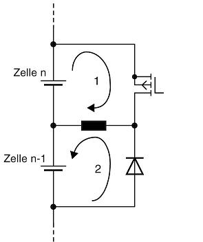 一(yi)旦(dan)線(xian)圈(quan)已(yi)經(jing)從(cong)通(tong)過(guo)晶(jing)體(ti)管(guan)放(fang)電(dian)的(de)電(dian)池(chi)單(dan)元(yuan)中(zhong)去(qu)耦(ou),電(dian)感(gan)中(zhong)儲(chu)存(cun)的(de)能(neng)量(liang)可(ke)通(tong)過(guo)一(yi)個(ge)二(er)極(ji)管(guan)對(dui)鄰(lin)近(jin)電(dian)池(chi)充(chong)電(dian)。因(yin)而(er)電(dian)荷(he)可(ke)以(yi)在(zai)兩(liang)個(ge)單(dan)獨(du)的(de)電(dian)池(chi)單(dan)元(yuan)之(zhi)間(jian)來(lai)回(hui)地(di)移(yi)動(dong),實(shi)現(xian)極(ji)高(gao)效(xiao)率(lv)並(bing)且(qie)幾(ji)乎(hu)無(wu)損(sun)耗(hao)。此(ci)方(fang)法(fa)具(ju)有(you)某(mou)些(xie)決(jue)定(ding)性(xing)的(de)優(you)點(dian):
