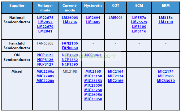 電壓模式控製的最新產品示例包括美國國家半導體製造的LM2267x Simple Switcher® 係列以及 Micrel 製造的 MIC472x和 MIC468x 係列。 這些部件包括內部補償,因此可在各種應用中方便地使用它們。