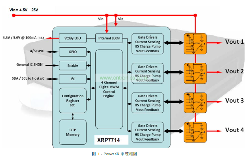 過去可以使用模擬電路或 FPGA 完成相移同步時鍾。 很遺憾,這會增加額外的組件、成本和開發工作。令人欣慰的是,當今市場上有多個數字 PWM 控製器集成了同步和相移。在本文中,Exar 的 PowerXR 技術展現了相移的優點,如圖 1 所示。