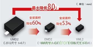 此次,產品陣容中新增了更加小型的VML2封裝(1.0×0.6mm)。通過這些產品,將非常有助於便攜設備節省空間。