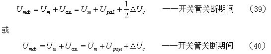 如果考慮電阻R對電容器C充電時的分流作用,以及開關管由導通到完全關斷期間漏極電流(逐步減小)對電容器C充電時的分流作用,則(33)和(34)式可以改寫為: