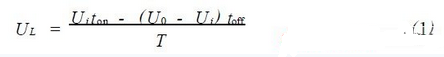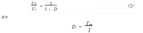其中,UL為電感兩端電壓在一個開關周期內的平均值;U0為輸出電壓;Ui為輸入電壓;T為開關周期;ton為Q3處於通態的時間;toff為Q3處於斷態的時間。令UL=0,在電感電流連續的工作過程中有: