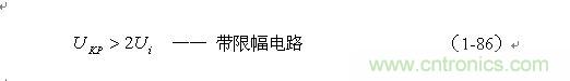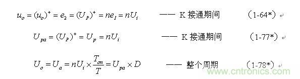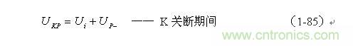 根據圖1-17,加到開關器件(控製開關)兩端的峰值電壓UKP正好等於輸入電壓Ui與反電動勢峰值Up-之和,即:
