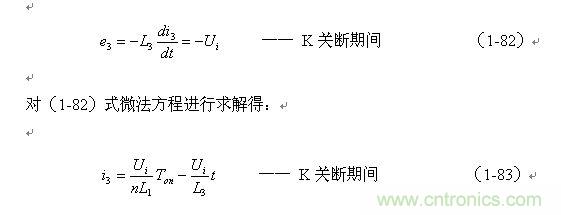 根據(1-83)式,當N3的匝數大於N1的匝數時,i3的最大值將要減小(N3/N1)倍;與此同時,i3下降的速率(di/dt)將變小了, i3過0的時間將被延長。