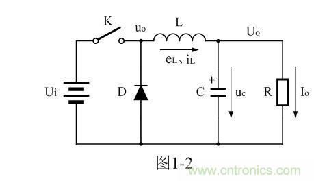 對於圖1-2,如果不看控製開關K和輸入電壓Ui,它是一個典型的反 型濾波電路,它的作用是把直流脈衝電壓通過平滑濾波輸出其平均值。