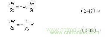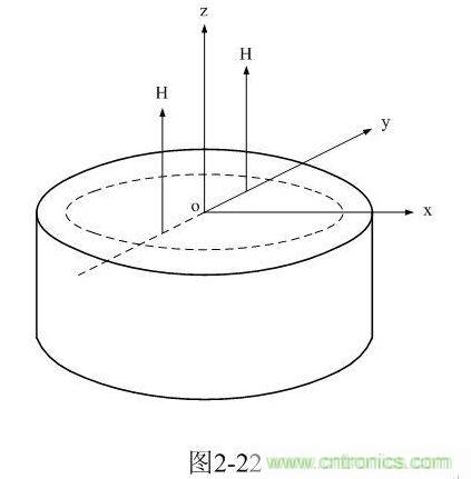 從圖2-19可以看出,磁場強度由H = Hz:和Hx = Hy = 0組成;對於電場強度,其指向平行於Y軸為E = Ey,Ex = Ez = 0。因此,上麵兩式又可以改寫為: