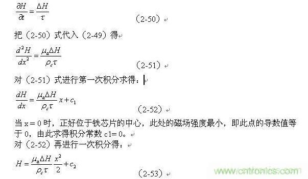 (2-48)式進行微分,然後代入(2-47)式,即可求得磁場強度的一維分布方程為: