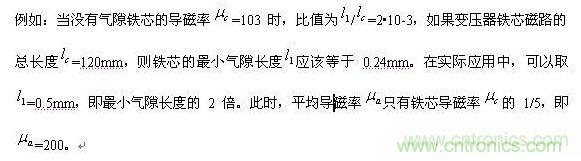 由於單激式開關電源變壓器鐵芯的磁滯回線麵積很小,其磁化曲線基本上可以看成一根直線,導磁率 也可以看成是一個常數;因此,這裏使用平均導磁率 來取代意義廣泛的導磁率。