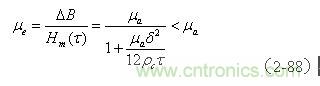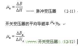 我們在前麵(2-11)式和(2-12)式中,已經介紹過脈衝變壓器的脈衝導磁率和開關變壓器平均導磁率的概念。脈衝變壓器的脈衝導磁率