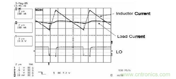 下圖說明了電感減小時,在輸出電壓的變化範圍內,負載電流的波動明顯增大。
