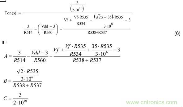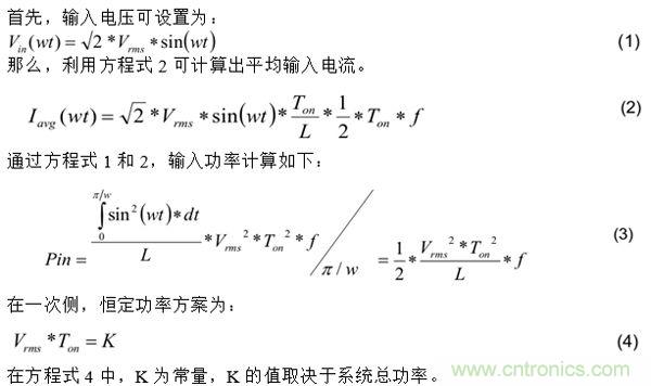 為了滿足一次側恒定功率控製的要求( Vrms *Ton= K),選擇B=0。同時,可根據輸入功率選擇A和C。